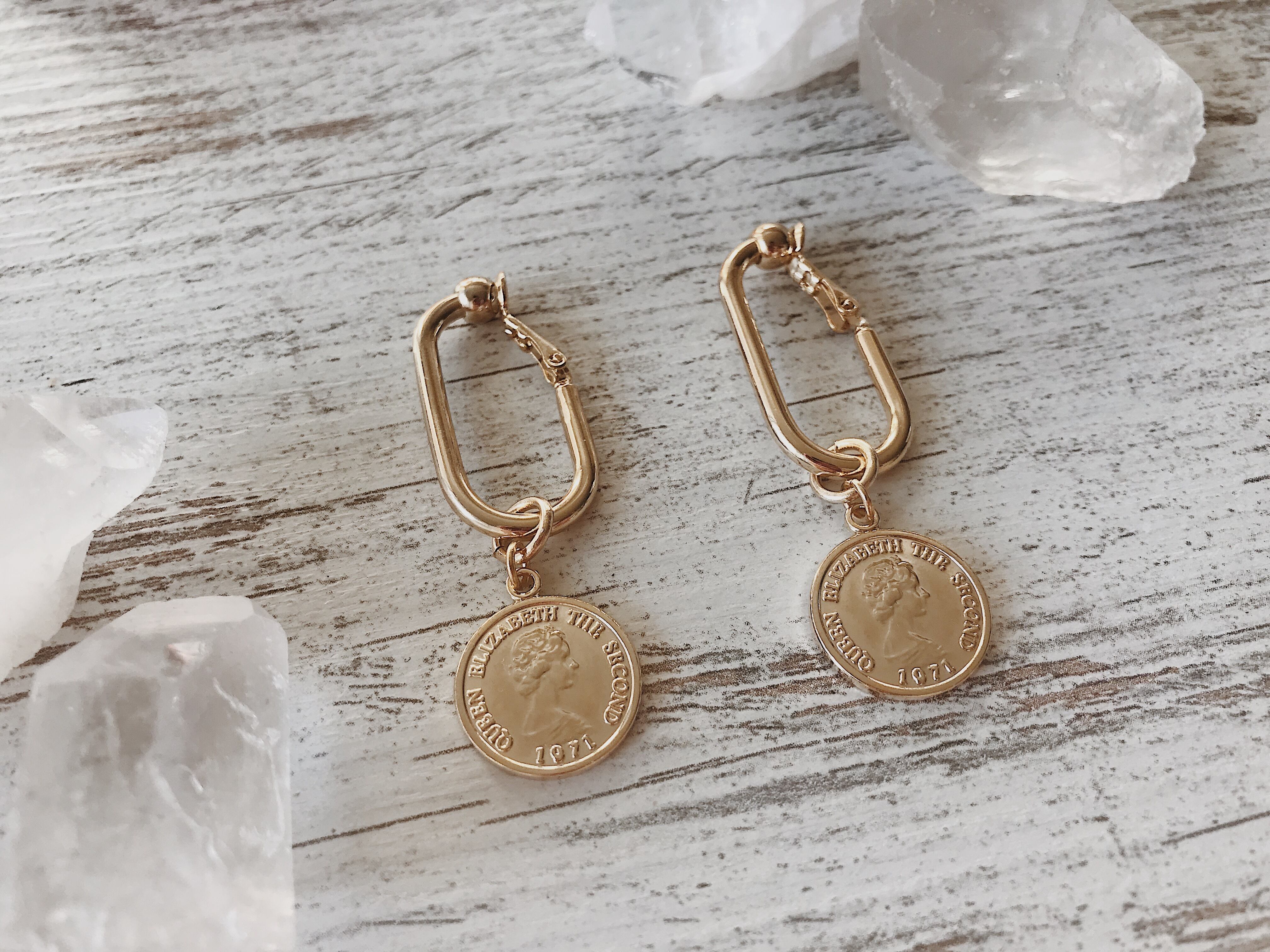 海外でおしゃれな人はみんなコインモチーフのアクセサリーを身につけている!?と言っても過言ではないくらい今大人気のコインモチーフを使用したイヤリング。 一つ持っておくと年中使えてヘビロテできます♪ ※こちらの商品はピアス・イヤリングどちらもご対応可能な商品です。 ご購入の際、ピアスかイヤリングかを備考欄に必ずご明記ください。 明記がない場合はイヤリングでのご対応となります。 全長(縦)...約5cm 全長(横)...約1.5cm